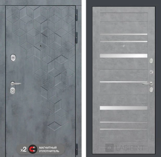 Дизайнерская входная Дверь Бетон класса Люкс с несколькими листами стали, звукоизоляцией и теплоизоляцией. Утепленный короб и полотно защитят от сквозняков и шумов. Модель не только надежная, комфортная, защищенная и высочайшего качества, но и очень красивая! Будет отлично сочетаться с интерьером дома, квартиры или офиса. Сейчас действует выгодное предложение по цене: 55 243 руб.
